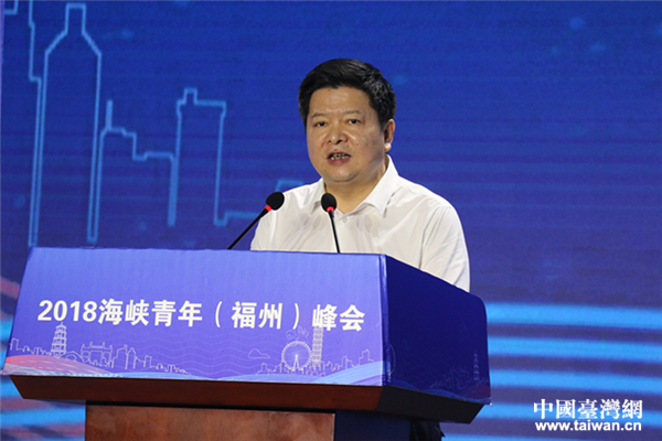 中共中央臺辦、國務院臺辦副主任龍明彪出席2018海峽青年(福州)峰會并發表致辭。(中國臺灣網 郜利敏 攝)