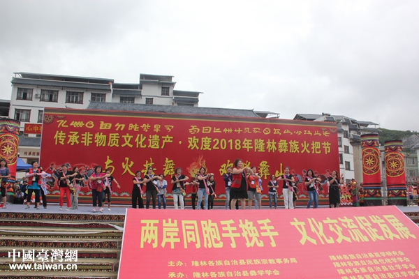 參訪團(tuán)在火把節(jié)上表演。(圖片來源:廣西臺(tái)辦)