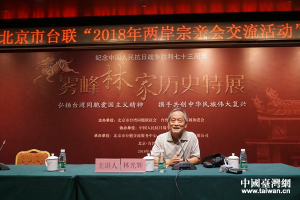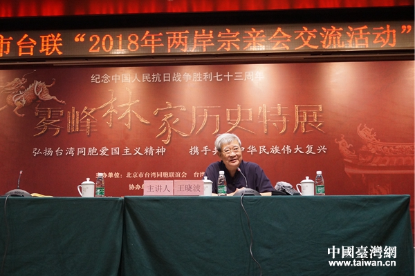 臺灣抗日志士親屬協(xié)進(jìn)會創(chuàng)會理事長林光輝作專題報告。(圖片來源:北京市臺聯(lián))