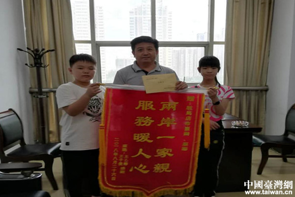 中國臺灣網8月28日駐馬店訊 8月26日,河南省駐馬店市臺辦、臺聯收到臺胞王子俊、王乙婷小朋友送來的一面印有“兩岸一家親,服務暖人心”的錦旗和感謝信。