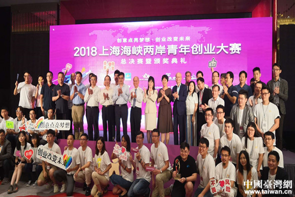 中國臺灣網8月29日上海訊 2018上海海峽兩岸青年創業大賽總決賽暨頒獎典禮于8月24日在上海市金山區順利落下帷幕。上海市金山區委書記趙衛星,上海市海促會會長李雷鳴,上海市金山區委常委、副區長張權權,上海市金山區委常委張恂,上海市科技創業中心書記王震,上海市就業促進中心副主任楊永華、上海市臺協榮譽會長李茂盛、競衡集團董事長張簡珍、臺灣國際創新創業發展協會秘書長楊士進、全國臺企聯副會長林子凱等嘉賓出席活動。