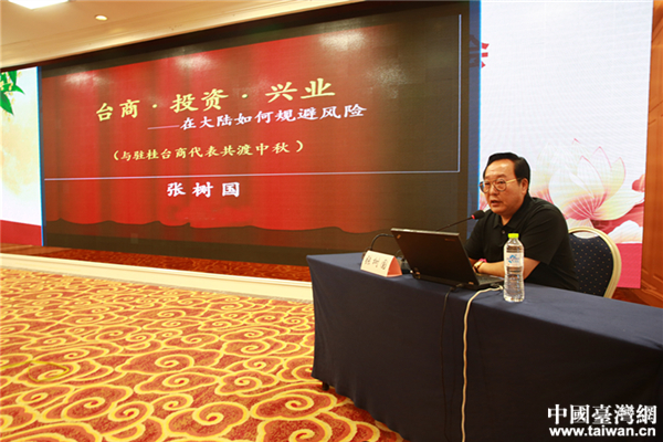 自治區(qū)臺辦法律顧問張樹國在“臺商在大陸投資興業(yè)如何規(guī)避風險”主題法律講座中,從兩岸同宗同源、桂臺兩地經(jīng)貿(mào)投資成果、大陸為服務臺商而搭建的立體服務平臺以及生活、投資與置業(yè)存在風險5個方面,提出了臺商在桂投資規(guī)避風險的方法和建議。