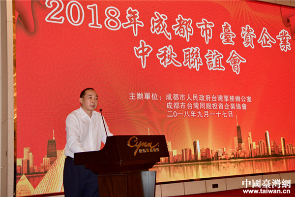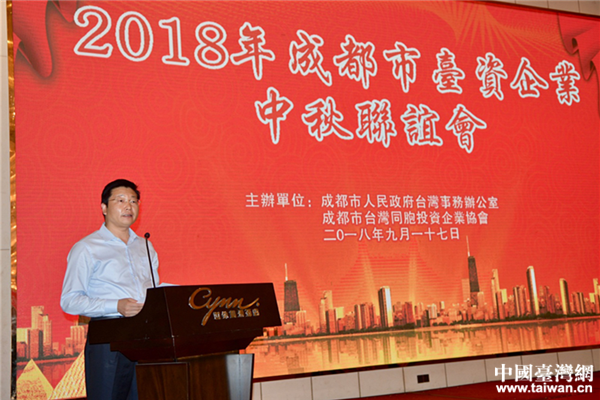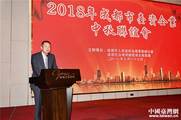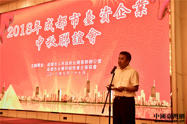 成都市臺辦主任戴浚主持中秋聯(lián)誼會。(圖片來源:四川省臺辦)