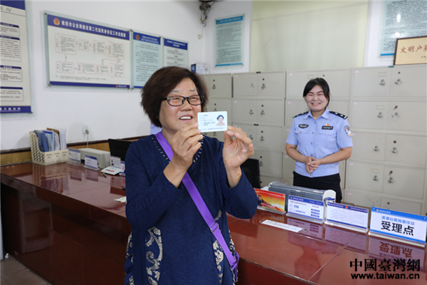中國臺灣網9月21日南陽訊 日前,在河南省南陽市西峽縣公安局城關派出所戶籍室,75歲的臺胞王學敏從戶籍民警手中接過“中華人民共和國臺灣居民居住證”,她說,有了居住證,以后看病就醫就更方便了,在家鄉能夠安度晚年,就是最大的愿望和最大的幸福。據南陽市公安局介紹,這也是南陽市發放的第一張港澳臺居民居住證。