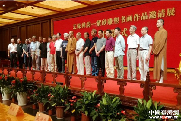 中國臺灣網9月26日上海訊 由佛教百寺基金會會長、上海禪詩書畫研究會主辦的“藝緣禪韻——紫砂雕塑書畫作品邀請展”于中秋節前在上海靜安寺隆重開幕。上海佛教協會會長、上海佛學院院長、靜安寺方丈慧明大和尚出席。《聯合時報》總編鄧迪榮,《新民晚報》社區版總編何紀春,上海中外文化藝術交流協會城鎮專委會名譽會長朱承宏、會長馮漢良和藝術家、文物專家、收藏家、藝術愛好者等200多人出席開幕儀式。