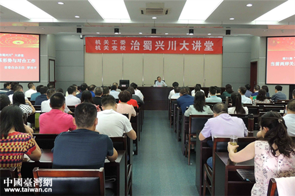 羅治平重點圍繞“當(dāng)前兩岸關(guān)系形勢與對臺工作”,從“臺灣及臺灣問題”“臺海形勢與兩岸關(guān)系發(fā)展”“中央對臺工作方針”“四川省對臺工作情況”4個方面,回顧了臺灣問題的由來和實質(zhì)以及兩岸關(guān)系發(fā)展的歷史沿革,深入分析了當(dāng)前臺海局勢和兩岸關(guān)系形勢,并就深入學(xué)習(xí)貫徹習(xí)近平總書記對臺工作重要論述精神,推動四川與臺灣經(jīng)貿(mào)、文化、人文交流作了全面介紹。