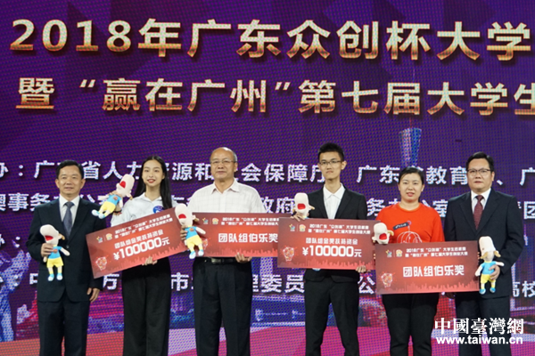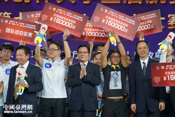 2018年廣東“眾創(chuàng)杯”創(chuàng)業(yè)創(chuàng)新大賽之大學(xué)生啟航賽舉行頒獎儀式。(圖片來源:廣東省臺辦)