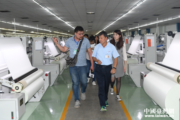 臺干林云炎介紹玻纖布制作工藝。(圖片來源:四川省臺辦)