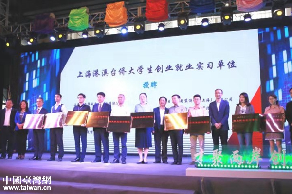 活動開幕式上,十家企業(yè)被授予“上海市港澳臺僑大學(xué)生創(chuàng)業(yè)就業(yè)實習(xí)單位”稱號。(圖片來源:上海市臺辦)