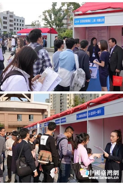 招聘會上,500余家企業(yè)在現(xiàn)場推出了9000余個崗位,吸引著眾多求職青年、學(xué)生關(guān)注。(圖片來源:上海市臺辦)