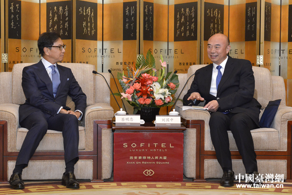 中國臺灣網10月31日西安訊 10月30日,陜西省省長劉國中在西安會見了臺灣富邦集團董事長蔡明忠。
