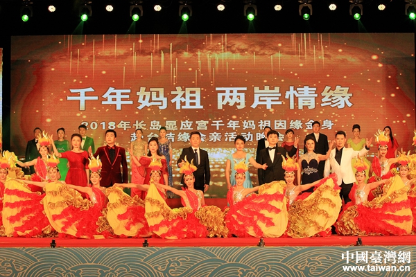 9月27日晚,“千年媽祖·兩岸情緣—2018年長島顯應宮千年媽祖因緣金身赴臺結緣會親”活動晚會在長島明珠廣場成功舉辦。近千名海島居民、媽祖信眾到現場觀看。晚會在此次赴臺結緣會親活動宣傳片中盛大開場,女聲獨唱《媽祖頌》、舞蹈《娘娘賜燈》、《天佑之光》、《闖海漢子》等節目展現出媽祖民心安愿,福蔭盛世的場面;舞蹈《海島明珠》《漁家號子》《歡樂漁家》等節目展示了長島碧海藍天、旖旎的海景風光和海鮮美食的饕餮盛宴。精彩的晚會表演贏得了現場觀眾的陣陣掌聲。29日上午,媽祖金身順利抵達廟島顯應宮并舉行了回鑾安坐儀式,圓滿完成了這“千年等一回”的盛大壯舉,為本次“2018年長島顯應宮千年媽祖赴臺結緣會親”活動畫上圓滿句號。