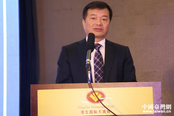 崇左市委書記、市人大常委會(huì)主任劉有明致辭。(圖片來源:廣西崇左市臺(tái)辦)