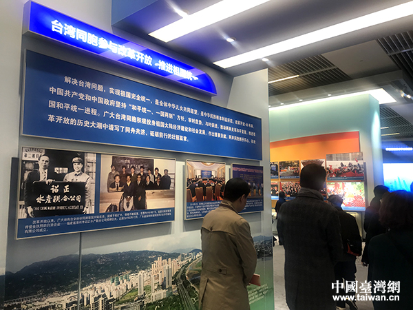 習近平總書記曾說過:“民族復興的路上,臺灣同胞不應該缺席,也一定不會缺席”。在大陸改革開放40年的歷史進程中,廣大臺灣同胞是重要的參與者和貢獻者。展區特別開辟出一片區域,展示和記錄廣大臺灣同胞積極投身大陸建設和社會發展,以及兩岸開啟交流交往30年來的諸多珍貴歷史時刻。