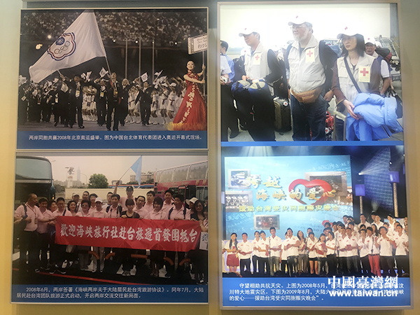 展區展出的記錄兩岸交流交往重要時刻的圖片。(中國臺灣網 普燕 攝)