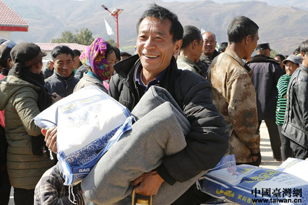 為彝族貧困群眾發放冬令物資現場。(圖片來源:什邡市臺辦)