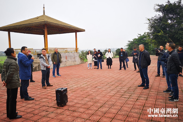 在峨眉山市紅山村與農(nóng)業(yè)業(yè)主現(xiàn)場(chǎng)交流。(圖片來(lái)源:樂山市臺(tái)辦)