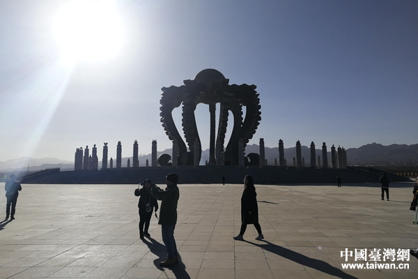 參訪團(tuán)在大境門合影留念。(中國臺灣網(wǎng) 張露露 攝)