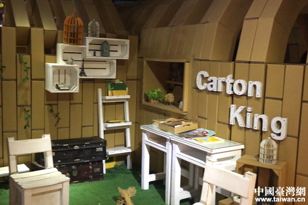 麥可將兩岸文創園紙箱王一角。(中國臺灣網 趙蓉 攝)