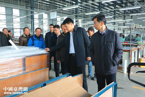 中國臺灣網12月24日訊 根據安徽省開展“四送一服”進民企活動的工作要求,12月17日,安徽省臺辦主任劉泉率隊赴含山縣,深入到臺企安徽仁豐飾材有限公司,詳細了解企業生產運營、市場開拓等方面情況,與臺企負責人溝通交流,并主持召開座談會,現場宣解政策,答疑釋惑,推動解決企業反映相關問題。