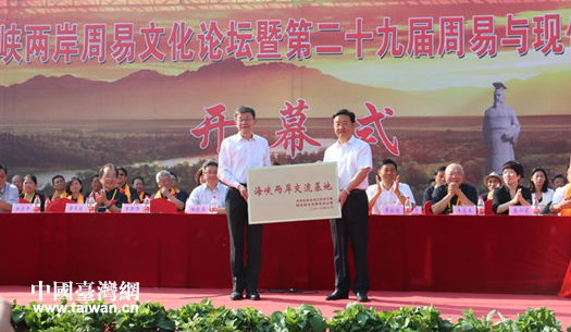 9月11日,2018海峽兩岸周易文化論壇期間,國臺辦交流局局長黃文濤宣讀中央臺辦、國臺辦關于批準安陽羑里城為海峽兩岸交流基地的決定,并向羑里城授“海峽兩岸交流基地”牌匾。
