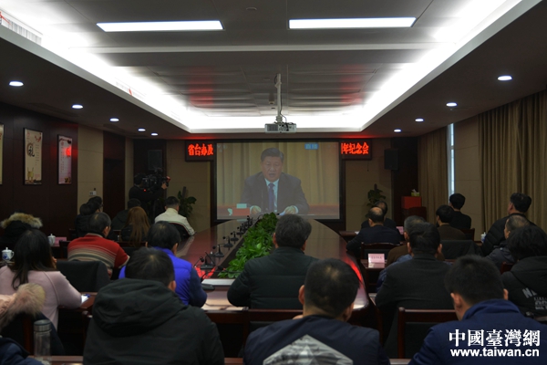江西省臺辦組織在贛臺胞臺屬代表和全體機關干部集中收看《告臺灣同胞書》發表40周年紀念會。(圖片來源:江西省臺辦秘書處)