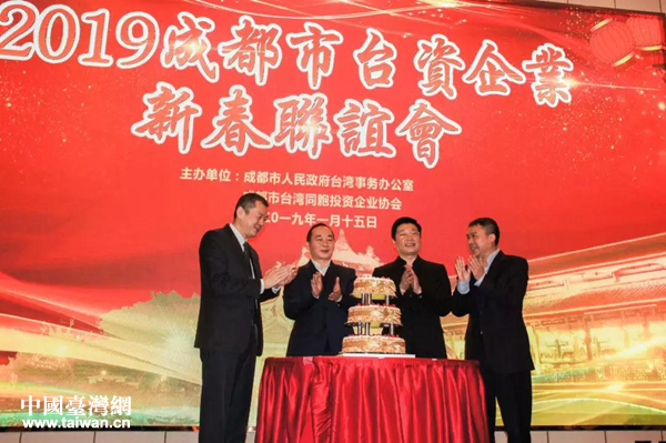 中國臺灣網1月18日成都訊 2019年1月16日,2019成都市臺資企業新春聯誼會舉行。省市有關部門負責人與在蓉臺商共計550余人歡聚一堂,喜迎新春。四川省臺辦主任羅治平、成都市委常委吳凱、成都市臺協會長徐大偉出席并致辭,成都市臺辦主任戴浚主持聯誼會。