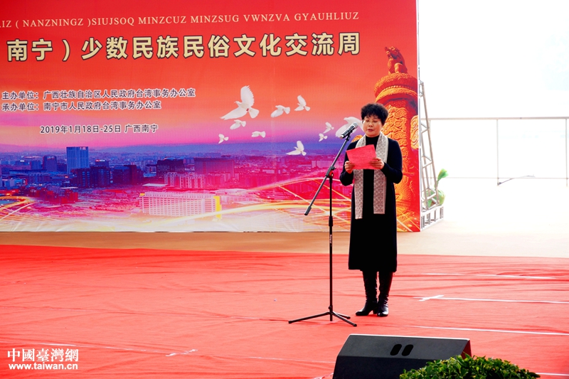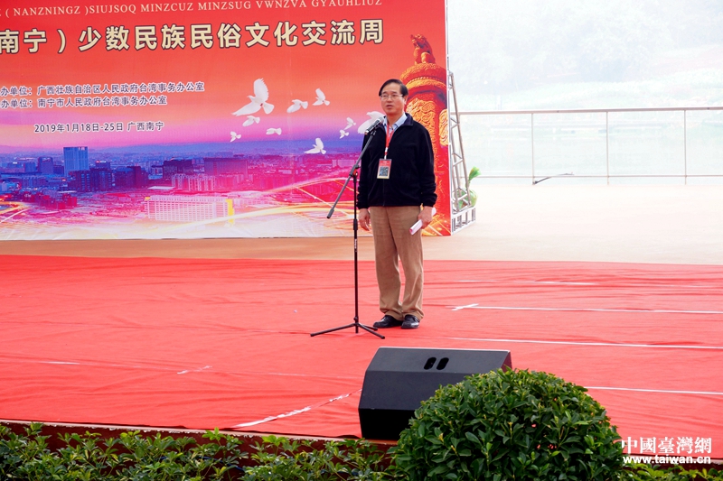 中國臺灣網1月22日南寧訊 1月20日,2019年首個桂臺重點交流活動——“桂臺(南寧)少數民族民俗文化交流周”開幕式在“望得見山,看得見水,記得住鄉愁”的南寧園博園舉辦。臺灣花蓮縣海峽兩岸少數民族交流協會參訪團、臺灣如一絲社參訪團、臺灣洄瀾參訪團等50多名臺灣同胞,與在邕臺商、南寧各界嘉賓代表共300多人,共襄民族盛典、共話同胞情誼。廣西臺辦主任李東興,南寧市委常委、統戰部長趙紅明出席開幕式并致辭。