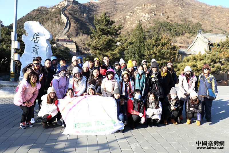 2019年臺胞青年冬令營22日開營。營員們在居庸關長城合影留念。(中國臺灣網 郜利敏 攝)