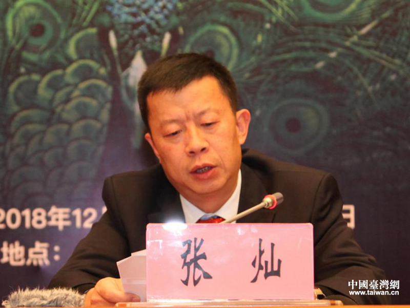 云南省臺辦副主任、新聞發言人張燦通報活動相關情況。(圖片來源:云南省臺辦)