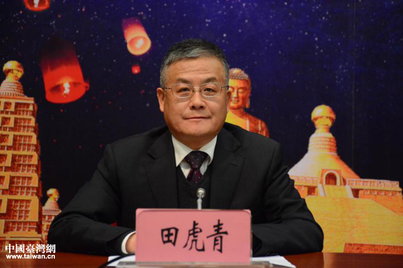 云南省人民政府新聞辦公室專職副主任田虎青主持新聞發布會。(圖片來源:云南省臺辦)