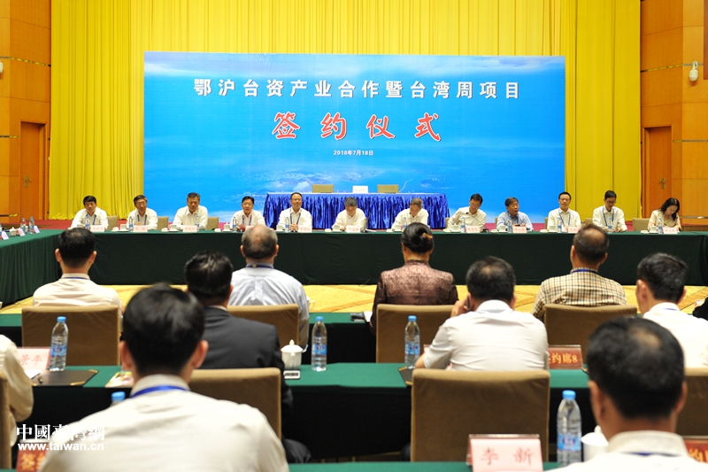 鄂滬臺資產(chǎn)業(yè)合作暨第十五屆湖北·武漢臺灣周項目簽約儀式。(圖片來源:湖北省臺辦)