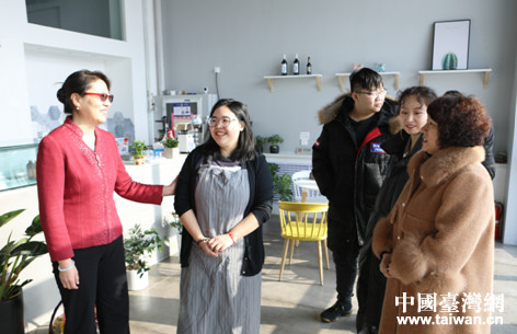 臺(tái)胞潘姵蓉和新疆塔城小伙夏斌通過(guò)網(wǎng)絡(luò)相識(shí)相愛(ài),現(xiàn)在組建了自己的小家庭,小兩口在烏魯木齊市經(jīng)營(yíng)一家西點(diǎn)甜品店。閻梅主任一行來(lái)到他們的小店,詳細(xì)詢問(wèn)了日常經(jīng)營(yíng)情況,同時(shí)向來(lái)疆創(chuàng)業(yè)發(fā)展的臺(tái)灣青年表示贊揚(yáng),并介紹了相關(guān)政策。鼓勵(lì)小兩口在疆發(fā)展信心,希望踏實(shí)工作,加倍努力,爭(zhēng)取擴(kuò)大經(jīng)營(yíng)。潘姵蓉表示,自己是學(xué)習(xí)烘焙專業(yè)的,手工制作是她的最愛(ài),來(lái)烏魯木齊市居住后,就開啟了線上手工蛋糕銷售,客戶還挺多,經(jīng)常都忙不過(guò)來(lái),去年又開了這家西點(diǎn)甜品實(shí)體店,認(rèn)識(shí)了很多新疆朋友,大家對(duì)她都非常友善,讓她感受到了新疆的熱情,也讓她一個(gè)遠(yuǎn)嫁到新疆的臺(tái)灣女孩非常感動(dòng)和欣慰。她稱,自己也非常喜歡新疆的氣候和飲食,常常向島內(nèi)的親朋好友介紹新疆,邀請(qǐng)他們來(lái)疆走走看看,了解認(rèn)知新疆。今后會(huì)積極參與臺(tái)辦舉辦的各類活動(dòng),繼續(xù)腳踏實(shí)地努力工作,爭(zhēng)取更大發(fā)展。