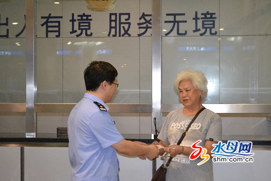 2011年8月,煙臺萊山國際機場的口岸出入境辦證室迎來了第一位辦理“落地簽”的臺胞。(圖片來源:煙臺市臺港澳辦)