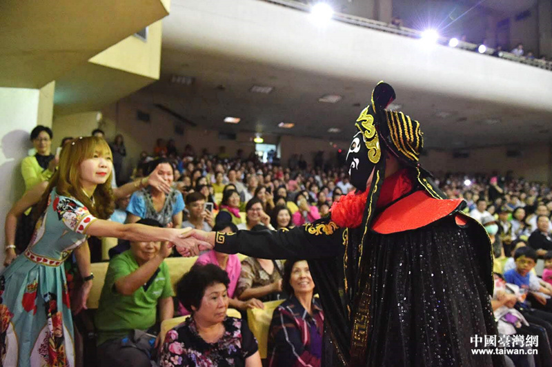 當(dāng)晚,高雄市苓雅區(qū)英雄館演藝廳內(nèi)氣氛熱烈。演出之前,交流團(tuán)的藝術(shù)家們現(xiàn)場展示了書法、京劇臉譜、剪紙和內(nèi)畫鼻煙壺傳統(tǒng)手工藝,并與高雄民眾熱絡(luò)交流。而后,來自中國評劇院、中國東方演藝集團(tuán)、中國鐵路文工團(tuán)、中國曲藝家協(xié)會、中國合唱協(xié)會、北京當(dāng)代舞團(tuán)、朝陽藝術(shù)團(tuán)和朝陽區(qū)街鄉(xiāng)藝術(shù)團(tuán)的藝術(shù)家們獻(xiàn)上多個精心準(zhǔn)備的節(jié)目,空竹表演《流光溢彩》、女生獨唱《美麗的草原我的家》、相聲《時尚評書》、快板《數(shù)唱老北京》等相繼上演,讓1000余位當(dāng)?shù)厥忻褓澆唤^口。其中,川劇變臉絕技備受青睞,在現(xiàn)場觀眾驚嘆叫絕中,來自朝陽藝術(shù)團(tuán)的青年川劇變臉演員蘇李偉下場與觀眾互動,掀起小高潮;主辦方精心設(shè)計的抽獎環(huán)節(jié)也人氣特別高,現(xiàn)場贈送的團(tuán)扇、茶杯墊等來自北京故宮的文創(chuàng)紀(jì)念品受到熱捧,讓觀眾觀賞之余也能把北京故宮獨具魅力的文化帶回家。