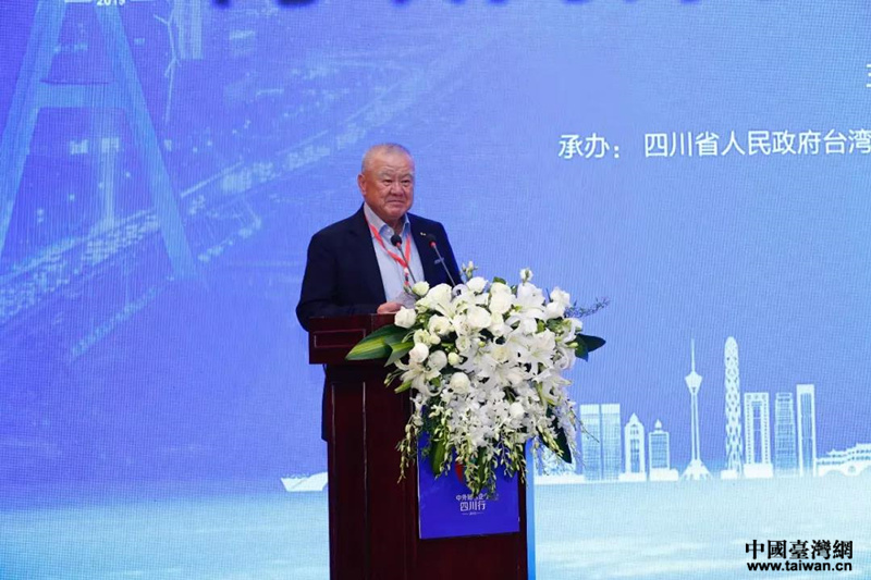 臺(tái)灣工商協(xié)進(jìn)會(huì)理事長(zhǎng)和臺(tái)玻集團(tuán)董事長(zhǎng)林伯豐致辭。(圖片來源:四川臺(tái)辦)
