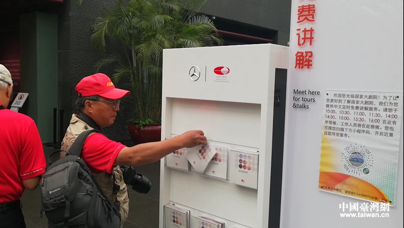 國家大劇院內,參訪團成員觀看講解圖冊。(中國臺灣網 張露露 攝)