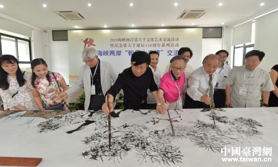 兩岸書畫家丹青溢彩、翰墨飄香,書寫盛世華章。(圖片來源:四川省臺辦)