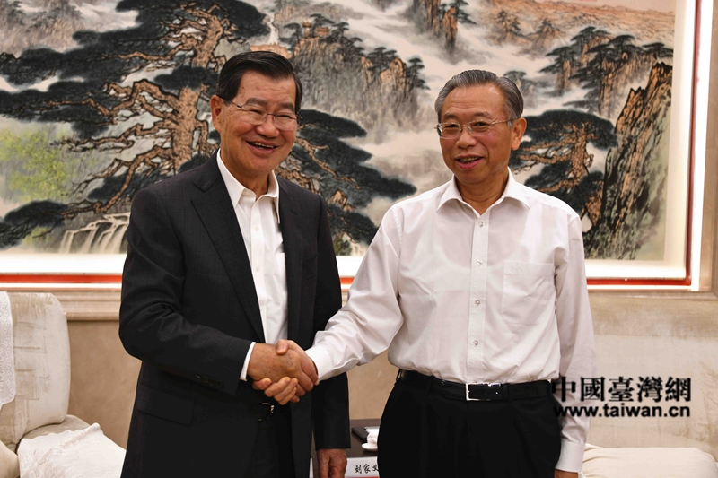 山東省委書記、省人大常委會主任劉家義會見兩岸企業(yè)家峰會臺灣方面理事長蕭萬長一行。(圖片來源:山東省臺辦)