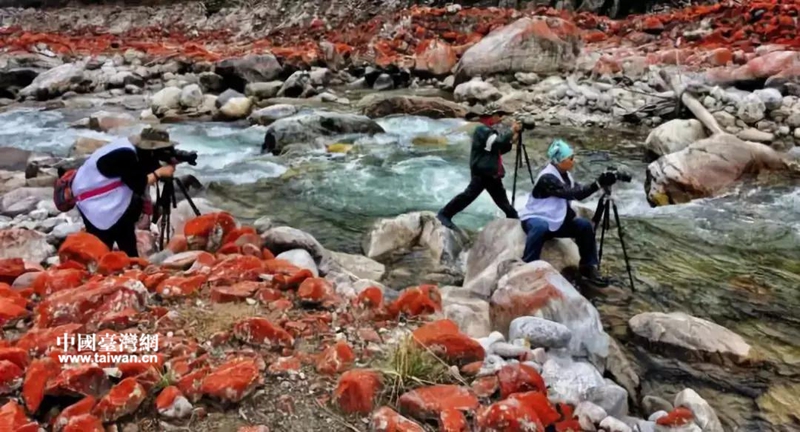 海螺溝紅石灘的傳奇色彩讓兩岸攝影家流連忘返。(圖片來源:四川省臺辦)