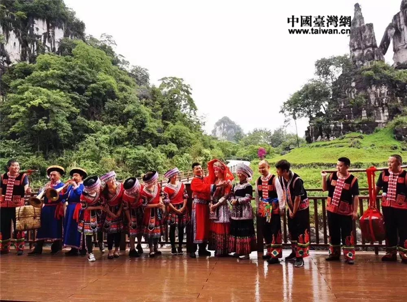 在興文石海夫妻峰,用鏡頭記錄苗家婚俗。(圖片來源:四川省臺辦)