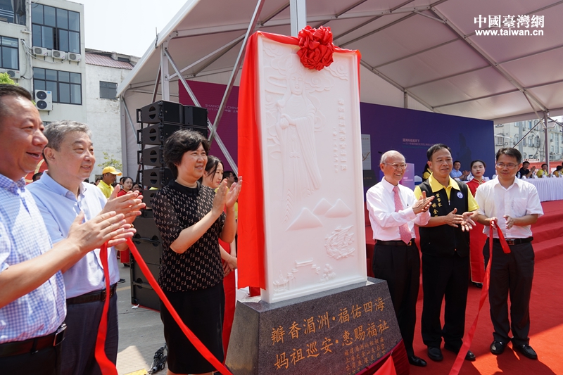 當天的活動中,中華媽祖文化交流協(xié)會向上海大金山天后宮贈送紅木匾額;湄洲媽祖祖廟董事會與上海大金山天后宮互贈匾額。湄洲媽祖祖廟、上海大金山天后宮、臺灣鹿港天后宮、昆山惠聚天后宮共同制作了“湄洲媽祖巡安金山山陽紀念碑”,永久留住媽祖巡安金山山陽的美好瞬間。此次活動,同樣吸引了近百位臺灣同胞前來參觀送駕,山陽鎮(zhèn)就大金山媽祖文化園、上海灣區(qū)科創(chuàng)中心建設(shè)等情況進行了專題推介。