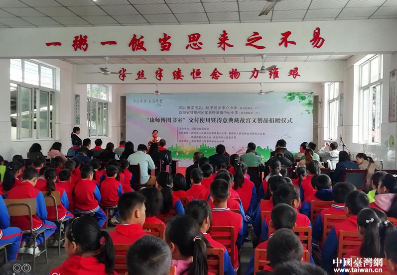 “康師傅圖書室”交付儀式在雅安市名山區茅河鄉中心小學舉行。(圖片來源:雅安市臺辦)