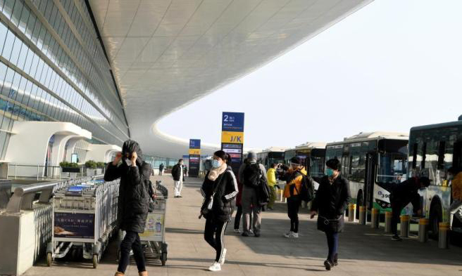 首批滯留湖北臺胞搭乘東航加班機返鄉。(來源:中新社)