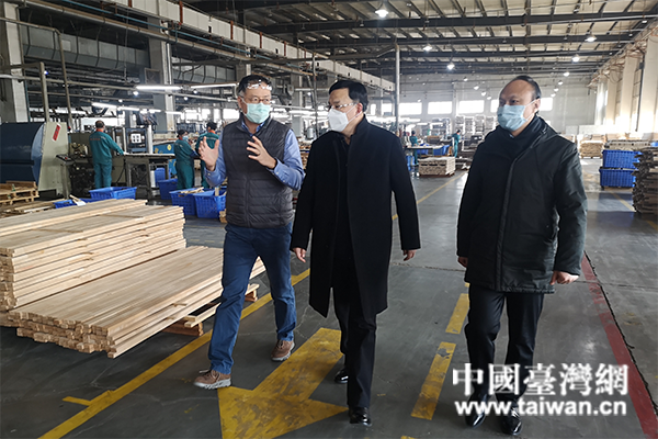 2月20日,青島市臺港澳辦主任紀家棟帶領企業服務專班和物資保障專班負責人,到西海岸新區和膠州市走訪復工企業,幫助支持引導臺資企業有效防控新冠病毒疫情、合理安排恢復生產。(圖片來源:山東省臺港澳辦)