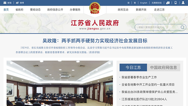 江蘇省人民政府官網截圖。