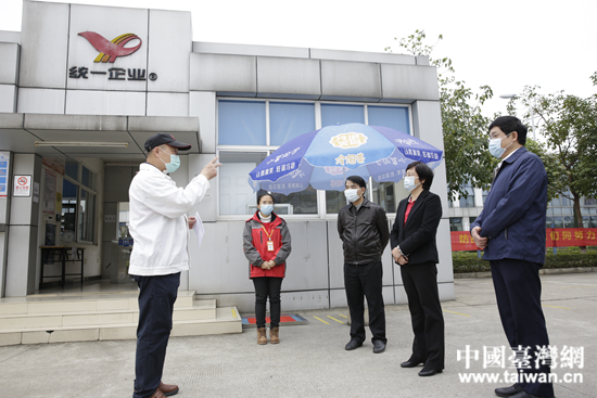 2月20日,廣西臺辦主任李東興、南寧市委常委趙紅明走訪臺企南寧泰聯淀粉有限公司、南寧中健包裝有限公司、南寧統(tǒng)一企業(yè)有限公司等臺資企業(yè),查看企業(yè)防護措施和防控物資儲備情況,現場協調解決有關企業(yè)材料運輸困難問題。