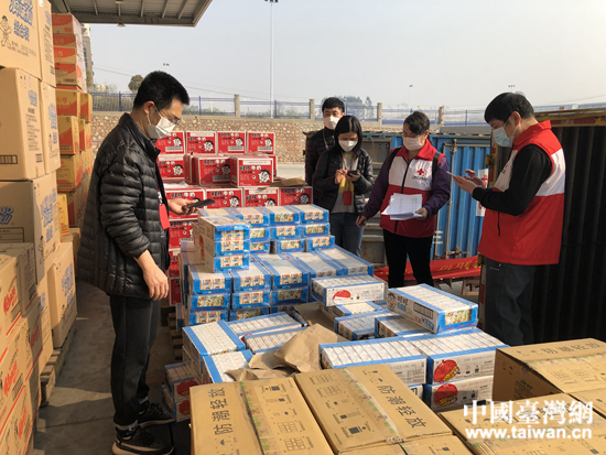 上海旺旺商貿有限公司南寧分公司為疫情防控戰(zhàn)線捐贈物資。 (中國臺灣網 發(fā))