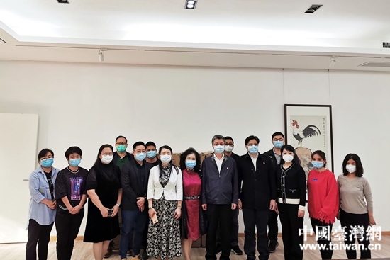 市臺辦、區臺辦,市臺聯和市臺協負責人與接收口罩的臺資企業代表合影。 (中國臺灣網 發)