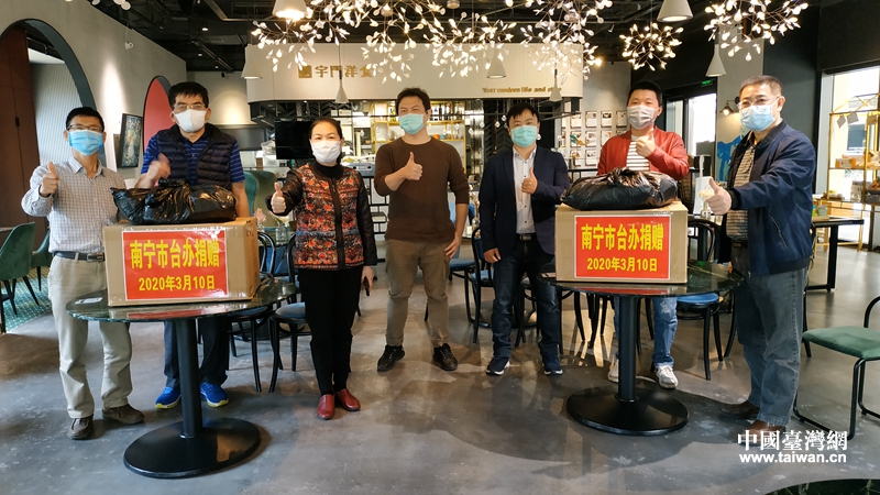 中國臺灣網3月11日訊 3月10日,廣西南寧市臺辦走訪在邕部分小微臺企和南寧市臺協代表,將廣西臺辦捐贈的8000個口罩送到臺商臺企手中,幫助他們解決了“燃眉之急”。